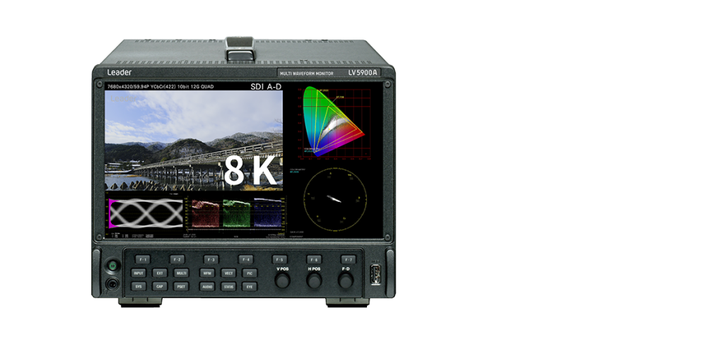 The LV5900 waveform monitor supports SMPTE ST 2082-12, which is used to receive 7680(8192)x4320 / 59.94P YCBCR10bit 8K video via 12G-SDI QUAD LINK. As it supports not only 8K but also a 4k input and four simultaneous HD inputs, you can use it as a high-end 8K system and switch between other systems as needed.