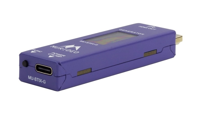 STIX Test Ecosystem Signal Generator The MU-STIX-G is a revolutionary Murideo thumb drive-sized 8K HDMI pattern generator supporting HDMI 2.1 FRL signals up to 48 Gbps and legacy HDMI 2.0 TMDS signals up to 18 Gbps. The MU-STIX-G is ideal for rack room assembly testing or light-duty in-field pass/fail signal transmission verification. 13 different test patterns can be generated at resolution timings from 720p/60 fps up to 8K/30 fps, including 4K/120 fps.